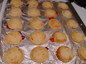 Then I topped them with another pie crust circle, molded the two pieces together, brushed ‘em with some egg whites and let ‘em bake for about 20 minutes.